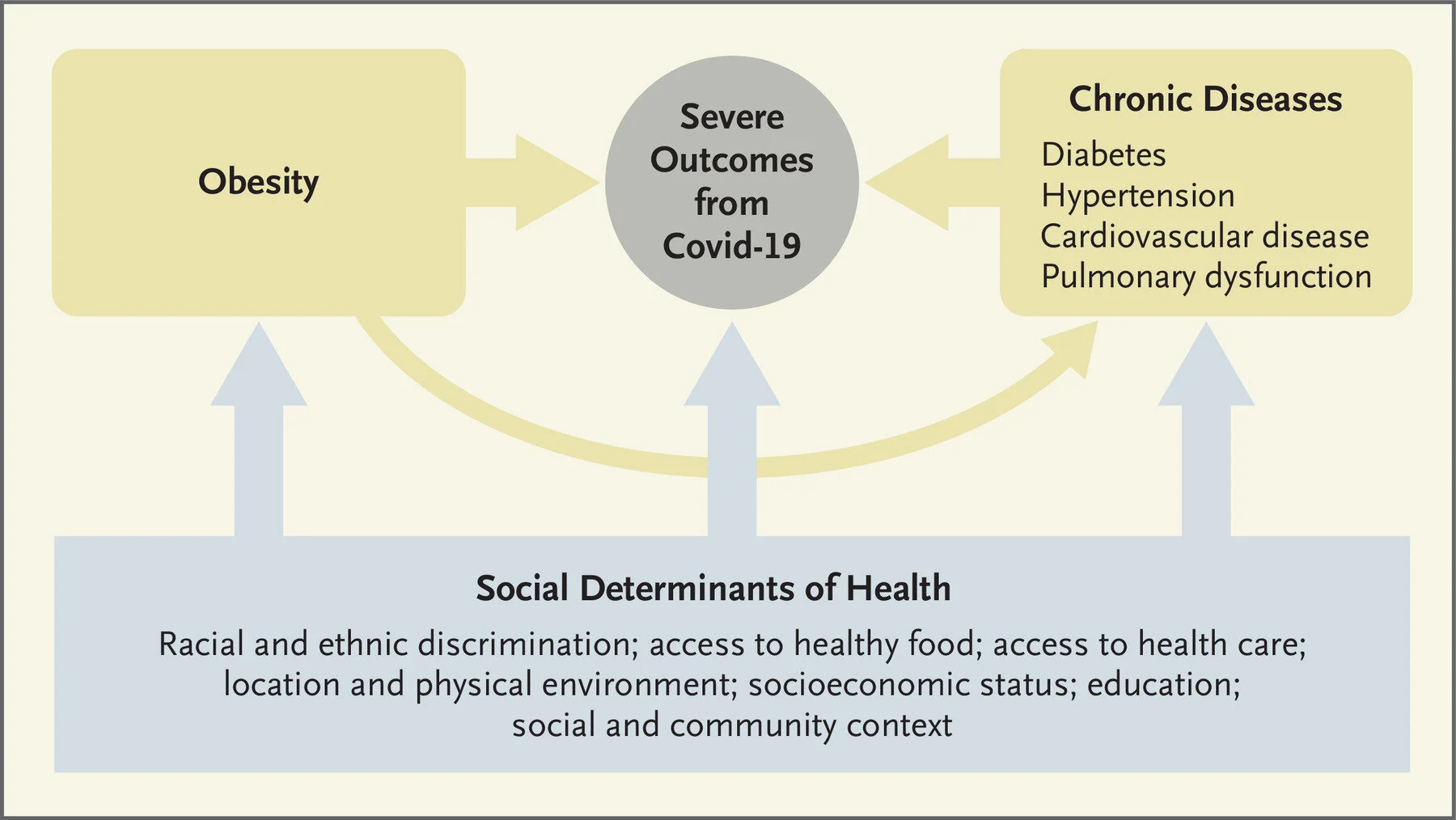 Social determinants of health, obesity, chronic diseases, and severe negative outcomes from Covid-19 are all interrelated.
