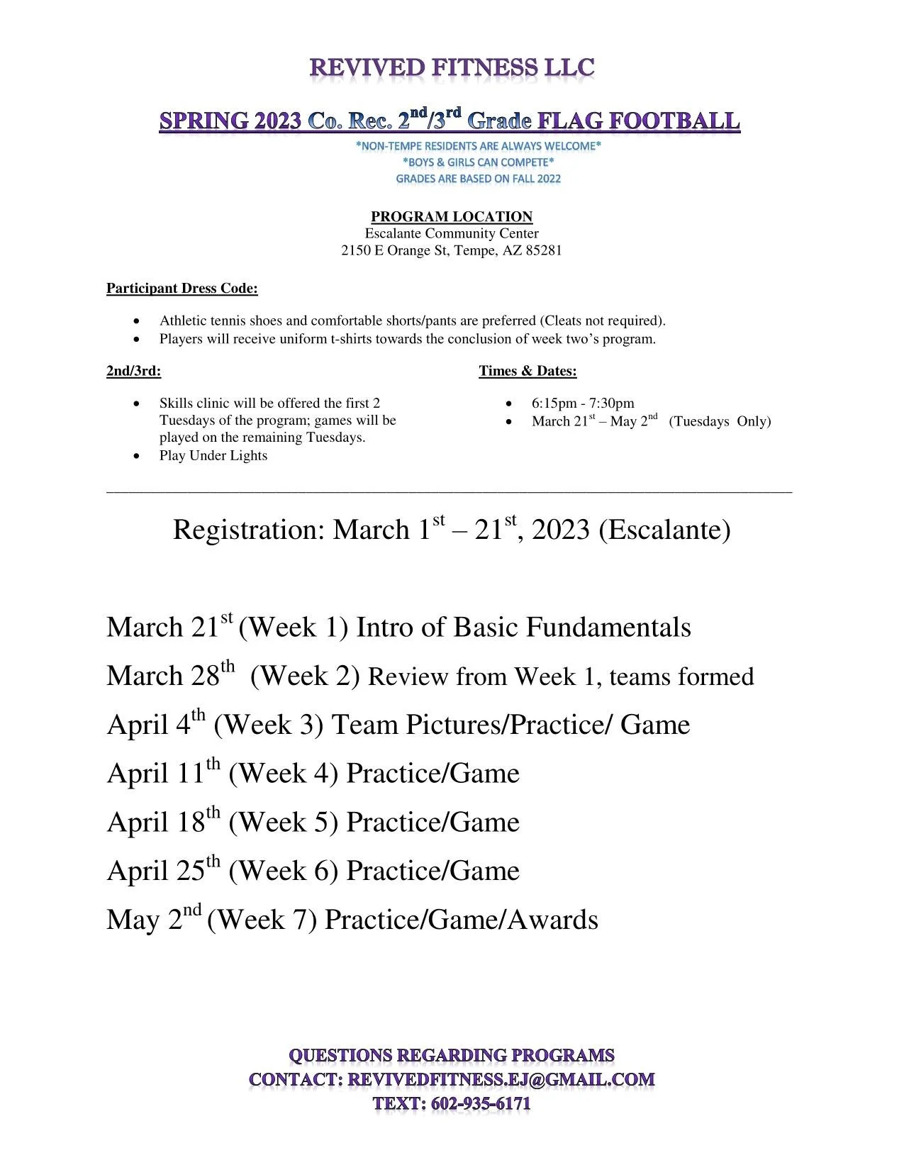 Flag Football; Revived Fitness Co. Rec.Leagues; Grades 2-3