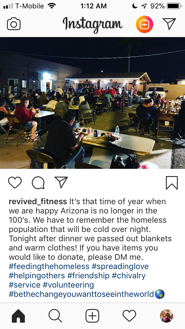 Providing free fitness and nutrition classes on the streets for homeless families! Delivering care packages and helping to feed homeless family's too!